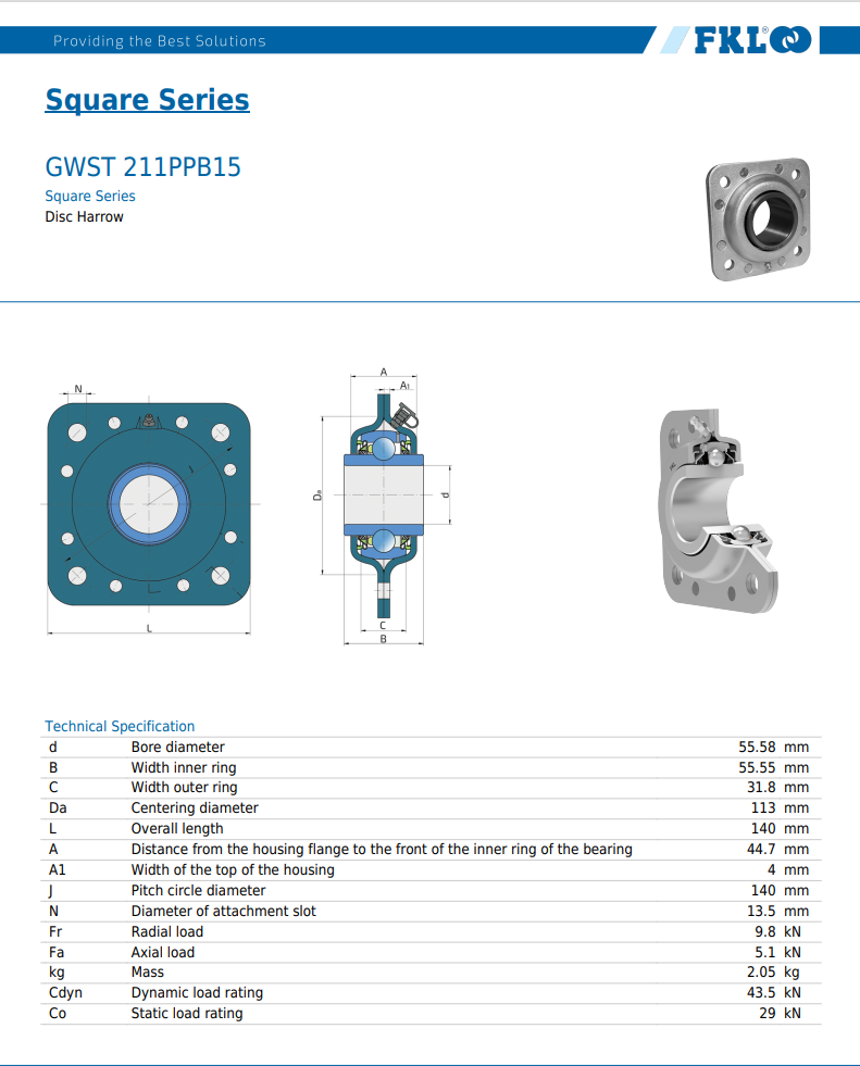 | Beschreibung: |  GWST 211.PPB-15    55,8 x 140 x 55,55 mm - FKL Anschraublöcher: N = 13,5 4-Loch Blechlagereinheit mit 3-fach Dichtung  |