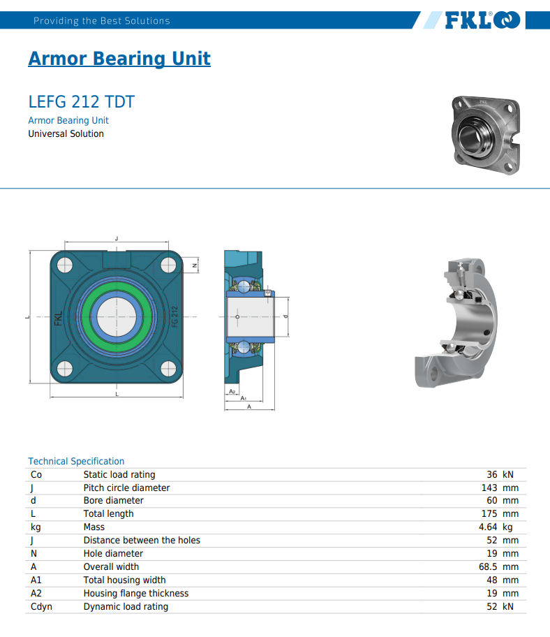 Produktinformationen "LEFG 212 TDT / 4-Loch Flanschlagereinheit mit 6-fach Dichtung +VZ"
