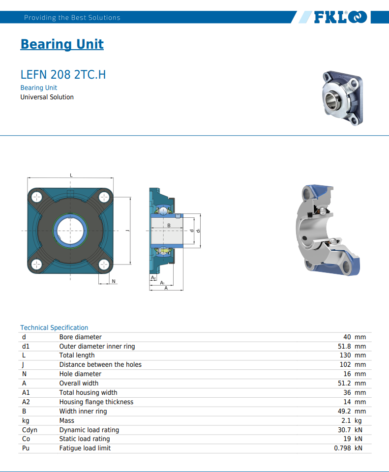 Produktinformationen "LEFN 208 2TC.H mit Blechdeckel / 4-Loch Flanschlagereinheit Wartungsfrei m. Deckel"