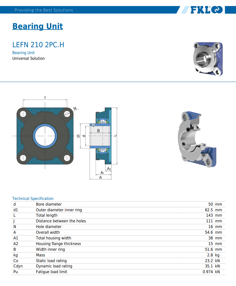 Produktinformationen "LEFN 210 2PC.H mit Blechdeckel / 4-Loch Flanschlagereinheit Sphäroguss +Deckel + W."