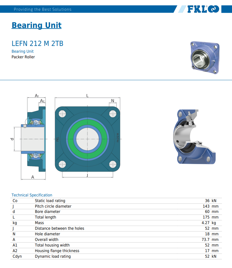 Produktinformationen "LEFN 212 M 2TB.H / 4-Loch Flanschlagereinheit mit 3-fach Dichtung + S"