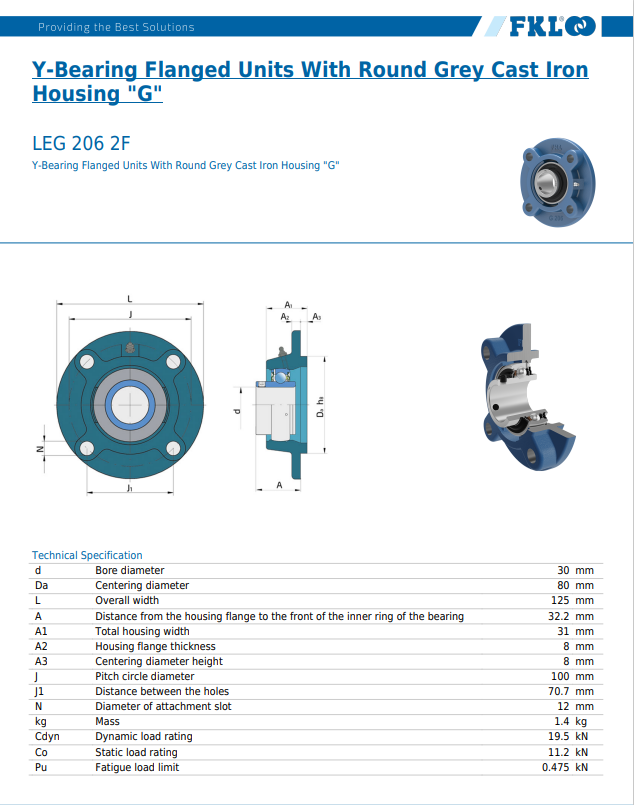 Produktinformationen "LEG 206 2F / 4-Loch Flanschlagereinh. rund m. ZA"