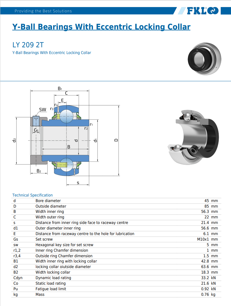 | Beschreibung: | LY 209 2T 45 x 85 x 22/56,3 mm - FKL Lagereinsatz mit 3 - fach Dichtung |